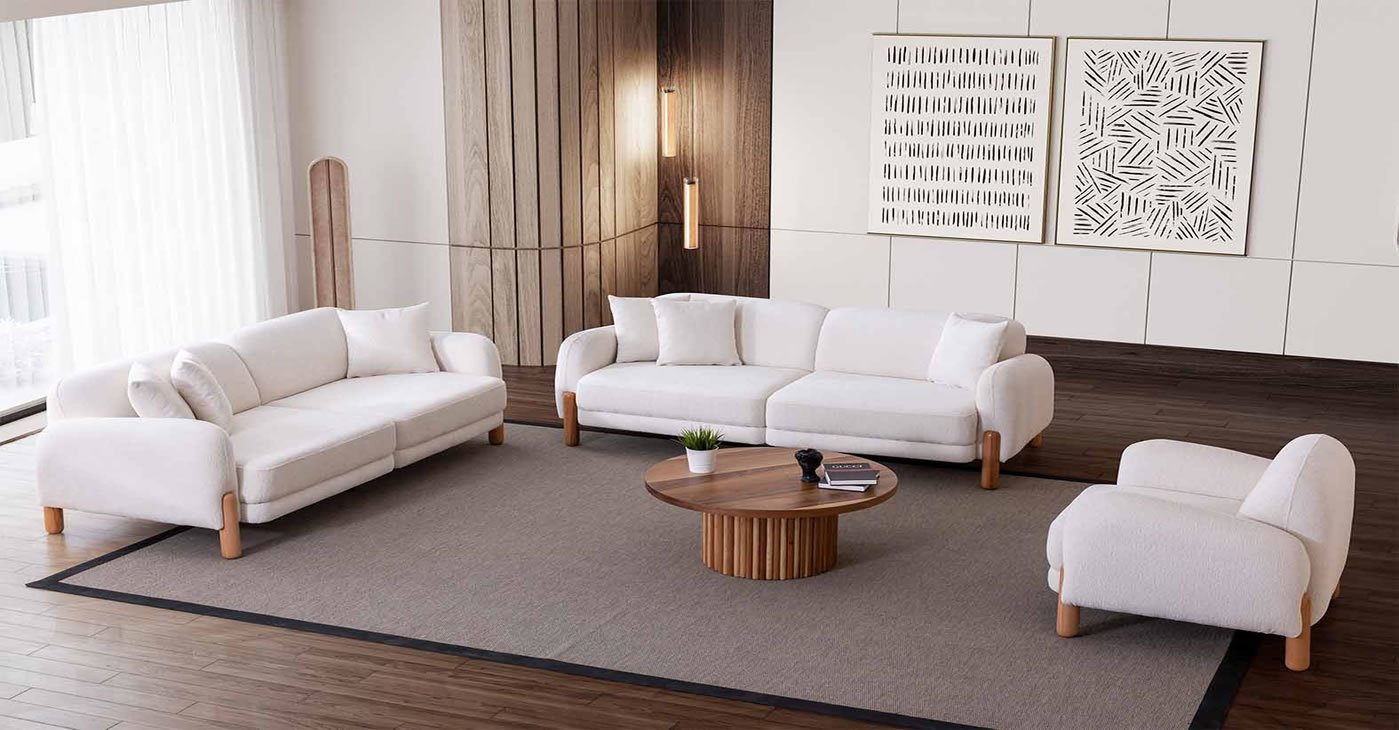 Ürün içeriği: 3 + 2 + 1 takımdan oluşmaktadır. | Ürün iskeleti: Gürgen, Kavak, Kontraplak dır. Kumaş Bilgisi: Yönsüz Kadife, Babyface, Keten, Nubuk vb. İsteğe bağlı kumaştan yapılabilir, fiyat farkı ödemesi yapılaraktan. Tüm renk seçenekleri mevcuttur. Sünger: 32 Dansity Soft sünger kullanılmıştır. | Sırttan yatırmalı yatak olma özelliğine sahiptir. Ayaklar: Metal