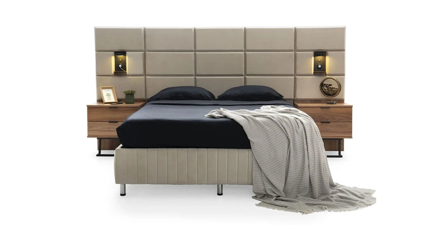 Yatak odası takımımız köşe 6 kapılı gardırop olarak tasarlanmış olup %100 MDF'den üretilmiştir. Bağımsız modüler özelliği ile dolabınızın boyutunu istediğiniz gibi seçebilirsiniz. Modüllerimiz 3 kapılı dolap + köşe dolap + 2 kapılı dolap + 1 kapılı dolap şeklindedir. İsteğe göre modüller eklenebilir veya çıkarılabilir. Yatak odası kapakları membrandır. Dolap kapakları menteşeli frenlidir. Elbise askılarında LED ışıklar bulunmaktadır. Komodin üstündeki panelde ayna ve aplik ışık bulunmaktadır. Dolap aynalı kapaklarında yansıtıcı cam bulunmaktadır.