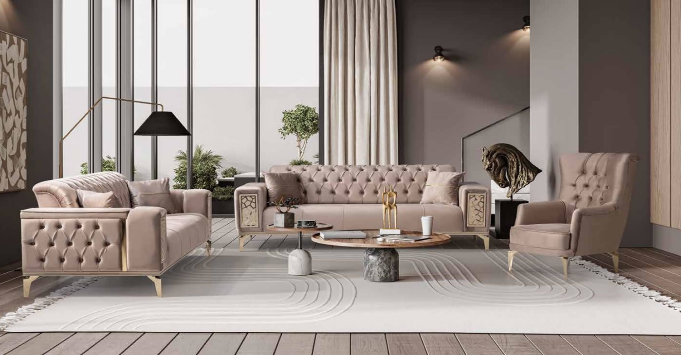 Ürün içeriği: 3 + 3 + 1 + 1 takımdan oluşmaktadır. | Ürün iskeleti: Gürgen, Kavak, Kontraplak dır. Kumaş Bilgisi: Yönsüz Kadife, Babyface, Keten, Nubuk vb. İsteğe bağlı kumaştan yapılabilir, fiyat farkı ödemesi yapılaraktan. Tüm renk seçenekleri mevcuttur. Sünger: 32 & 28 Dansity Soft sünger kullanılmıştır. | Sırttan yatırmalı yatak olma özelliğine sahiptir. Ayaklar: Plastik & Metal