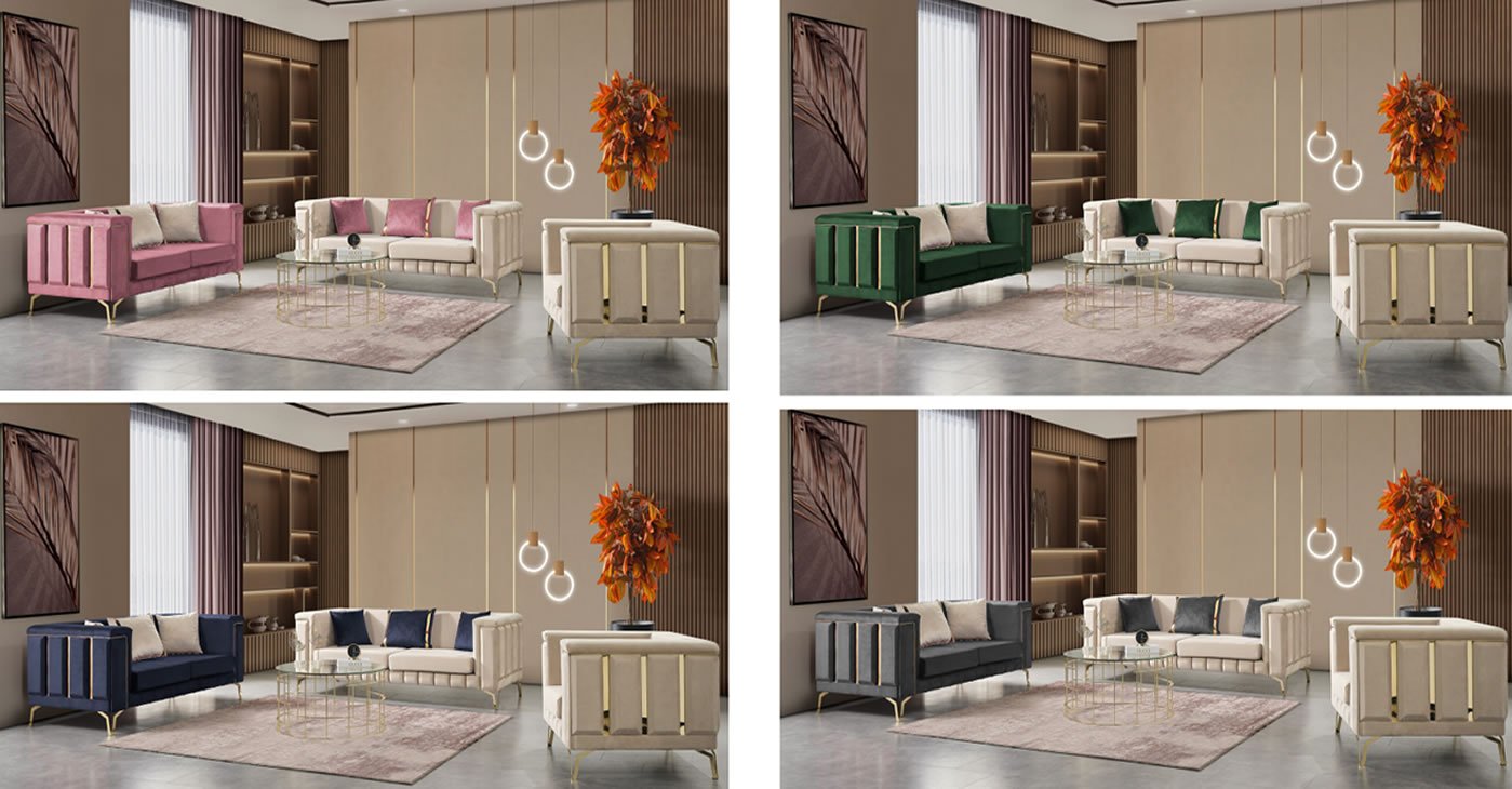 Ürün içeriği: 3 + 2 + 1 takımdan oluşmaktadır. | Ürün iskeleti: Gürgen, Kavak, Kontraplak dır. Kumaş Bilgisi: Yönsüz Kadife, Babyface, Keten, Nubuk vb. İsteğe bağlı kumaştan yapılabilir, fiyat farkı ödemesi yapılaraktan. Tüm renk seçenekleri mevcuttur. Sünger: 32 Dansity Soft sünger kullanılmıştır. | Sırttan yatırmalı yatak olma özelliğine sahiptir. Ayaklar: Metal