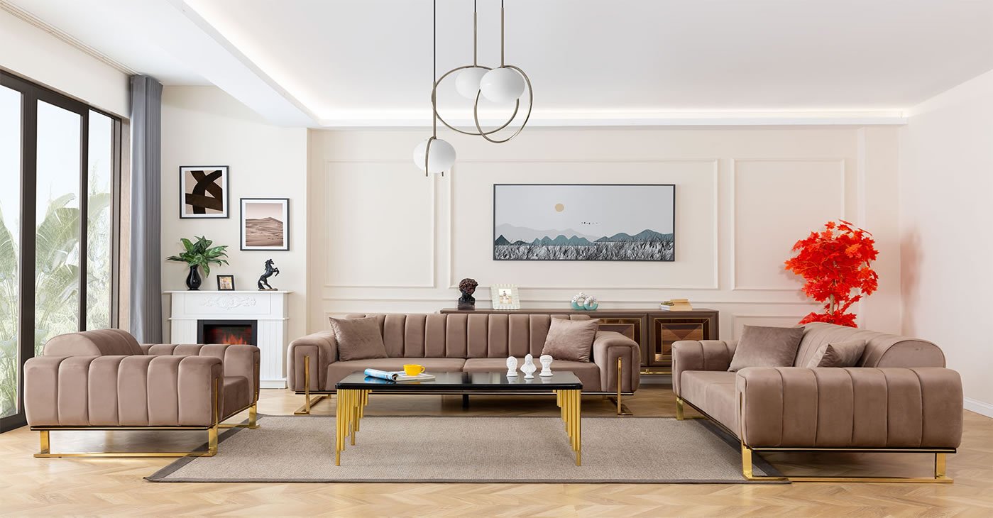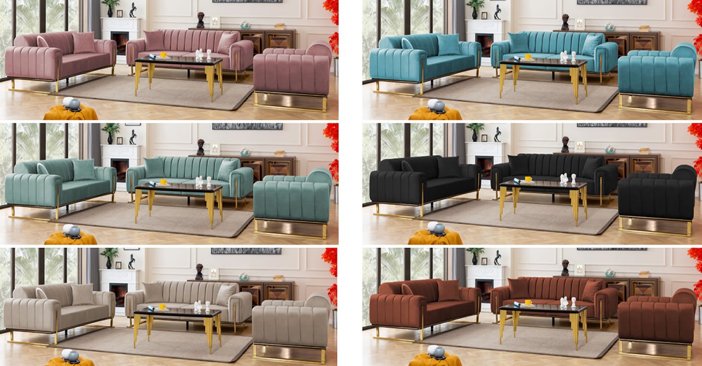 Ürün içeriği: 3 + 2 + 1 takımdan oluşmaktadır. | Ürün iskeleti: Gürgen, Kavak, Kontraplak dır. Kumaş Bilgisi: Yönsüz Kadife, Babyface, Keten, Nubuk vb. İsteğe bağlı kumaştan yapılabilir, fiyat farkı ödemesi yapılaraktan. Tüm renk seçenekleri mevcuttur. Sünger: 32 Dansity Soft sünger kullanılmıştır. | Sırttan yatırmalı yatak olma özelliğine sahiptir. Ayaklar: Metal
